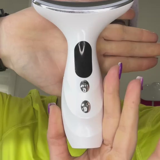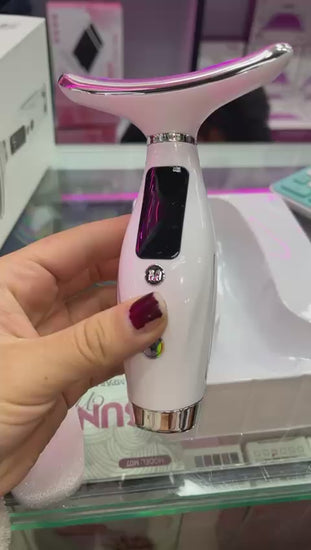 Dispositivo facial con terapia LED multicolor y masaje que ayuda a mejorar la luminosidad de la piel. Fácil de usar en casa, en pocos minutos al día.
